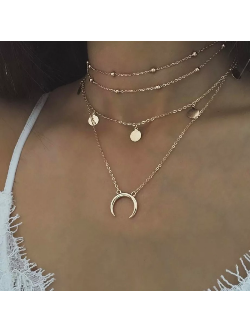 Collar con doble filamento en capas con cuerno de luna.