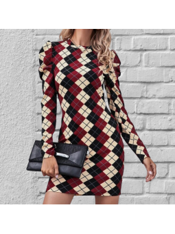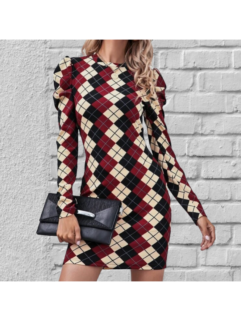 vestido ajustado con estampado de rombos y manga larga